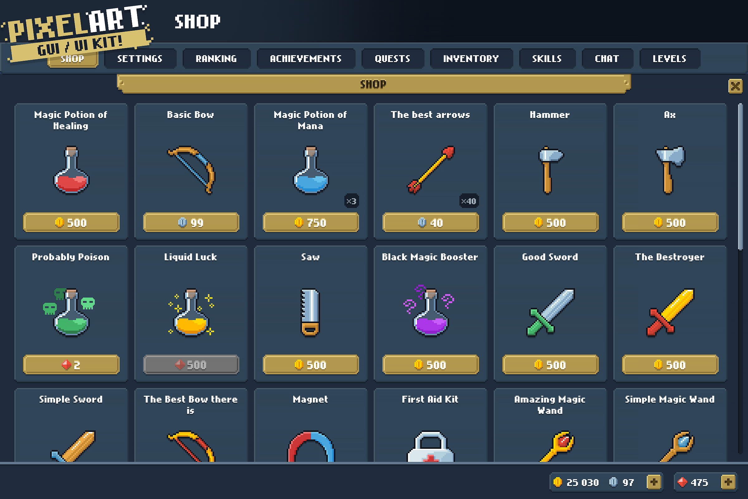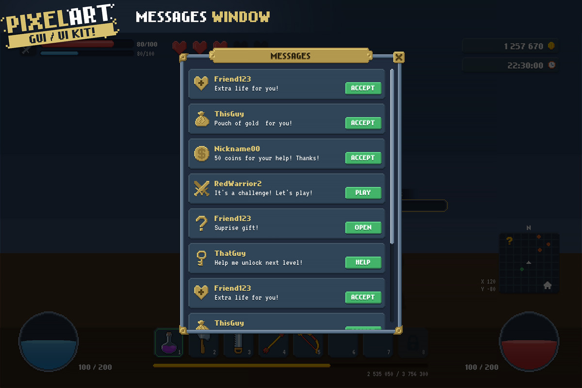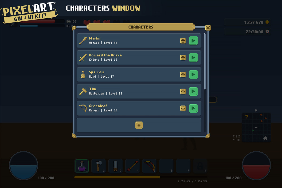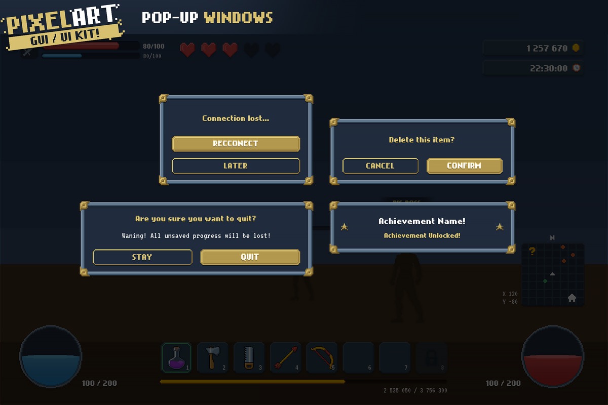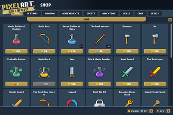 Please note this is a graphical UI pack to use as a starting point for your own games. Game-specific features will require additional programming work on your end.
