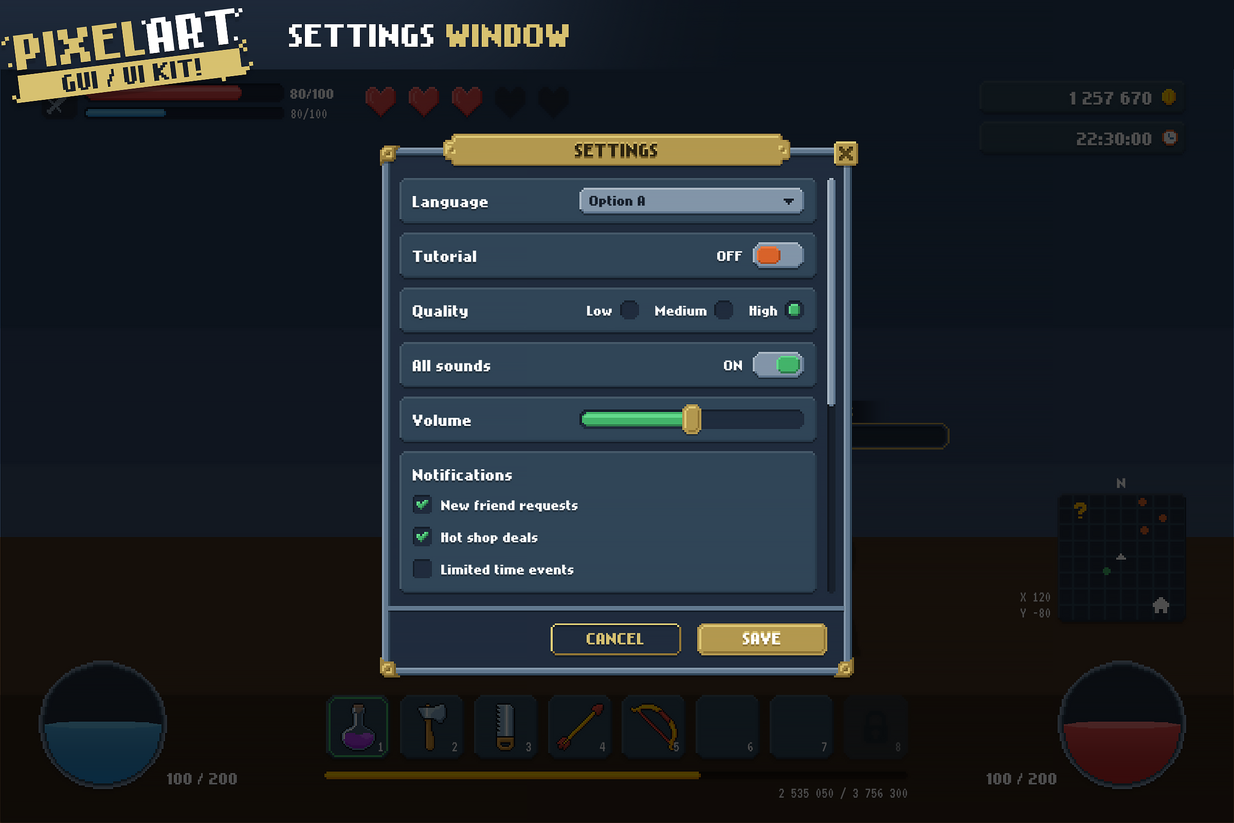 PIXEL ART GUI / ESSENTIAL RPG HUD 8x8, 16x16, 32x32 UI PACK {for Unity}